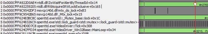 이제 코드를 살펴보자. 뮤텍스 위치를 찾아보자. Video_Driver::Tick() 부분을 살펴보자. 주석을 보면 게임 스레드가 작업 중인 경우 대기하는 것을 알 수 있다. .
